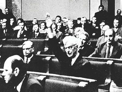 Zdjęcie, które zostało zrobione 50 lat temu w Sejmie, też bym umieścił w polskim albumie. Ktoś, kto nie zna kulis tego, co przedstawia, może nie zwróciłby na fotografię uwagi. Ot, sejmowe głosowanie, siedzą posłowie, jeden ma podniesioną rękę do góry. A jednak to zdjęcie upamiętnia wyjątkowo poruszające zdarzenie.
